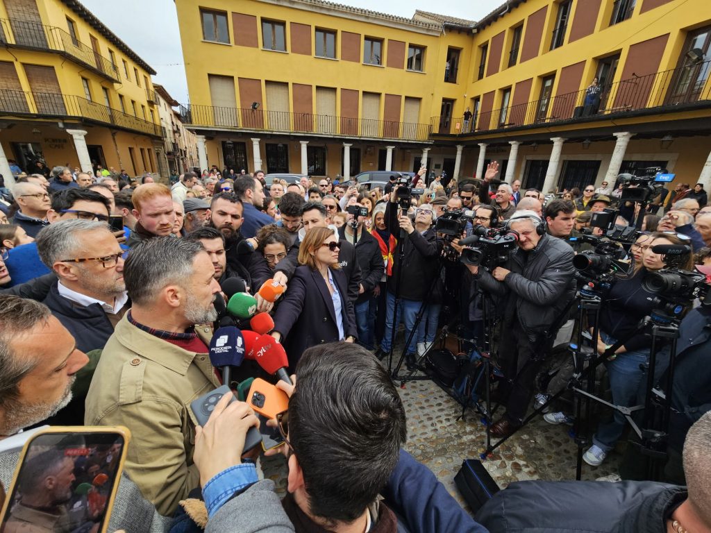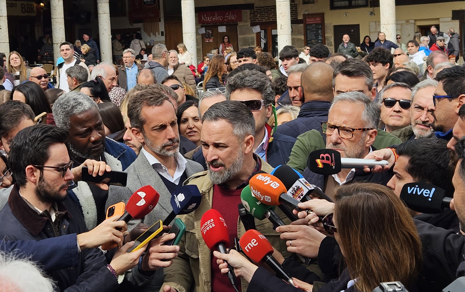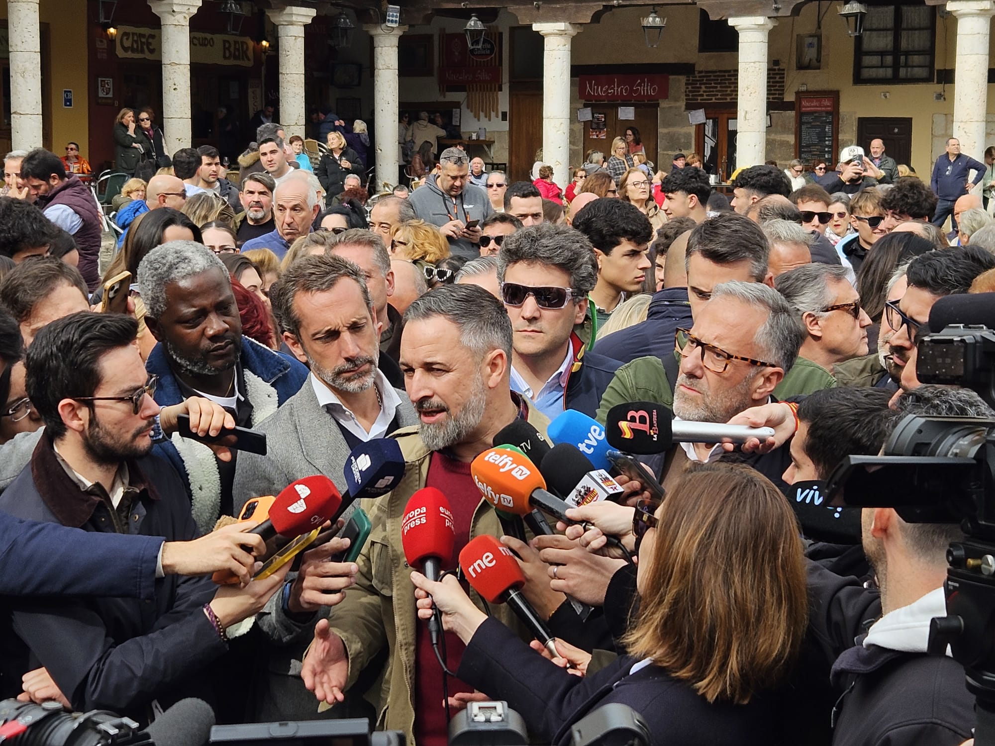 El líder de VOX a nivel nacional, Santiago Abascal, ha protagonizado este viernes un acto electoral en Tordesillas en el que ha prestado declaraciones a distintos medios de comunicación, acercándose a sus simpatizantes y arropando a los candidatos de su partido a las elecciones autonómicas del 15 de marzo. En sus declaraciones ha abordado diversos asuntos de actualidad a nivel nacional, remarcando especialmente su rechazo a Mercosur, un acuerdo que ha considerado “un crimen contra el campo y contra la soberanía alimentaria”.