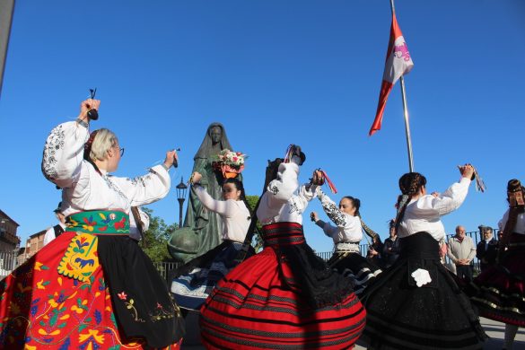 Los vecinos realizaron la tradicional ofrenda floral a la luz de las velas junto a la estatua de la Reina Juana y disfrutaron de la actuación del Grupo de Danzas y Percusión Juana I de Castilla Con un sol aún radiante que ya iba apagando…
