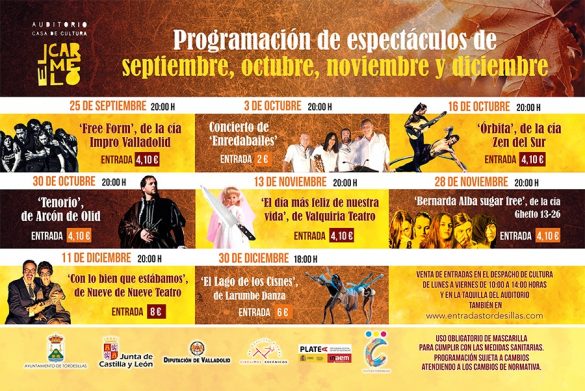 Teatro, danza y comedia llegan a la Casa de cultura de Tordesillas durante los meses de octubre, noviembre y diciembre con espectáculos para todos los públicos. El Ayuntamiento de Tordesillas, a través de la concejalía de Cultura, ha dado a conocer los espectáculos programados para…