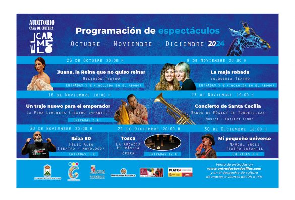 Del 26 de octubre al 30 de diciembre el teatro tordesillano recibirá a distintas compañías y agrupaciones que emocionarán y pondrán en pie el patio de butacas con sus puestas en escena El trimestre cultural arranca en El Carmelo, y el teatro tordesillano ha dado…