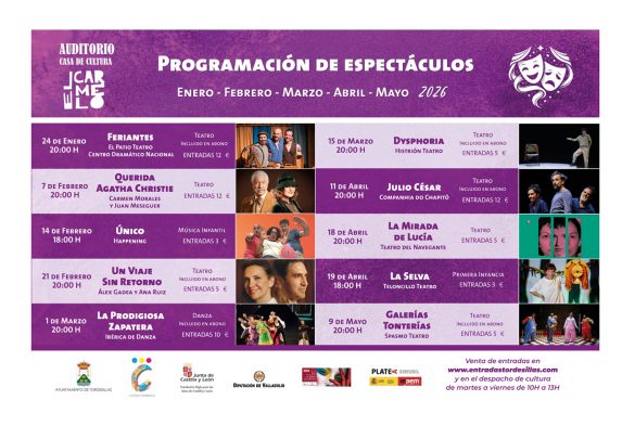 Diez espectáculos de diferentes registros y para todos los gustos y edades se pondrán en escena del 24 de enero al 9 de mayo para hacer disfrutar al público tordesillano Pasadas ya las primeras semanas del 2026, el Auditorio El Carmelo ha dado a conocer…