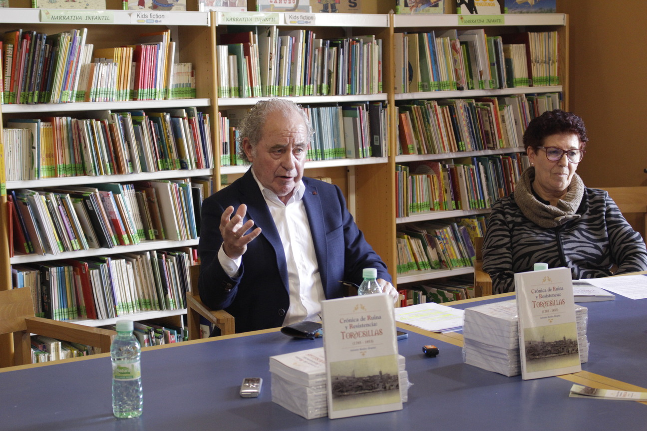 La Biblioteca Municipal de Tordesillas ha acogido este miércoles la presentación del último libro del escritor tordesillano Antonio Benito, quien, acompañado de Rita Santiago, ha dado a conocer las claves para entender la historia, valorar las anécdotas que en él se cuentan y aprender del pasado de la localidad. ‘Crónica de ruina y resistencia, Tordesillas 1785-1853’ se muestra así como la nueva publicación de este autor que desde hace años busca acercar a los tordesillanos su historia a través de libros que recojan los hechos más llamativos y “menos conocidos”.