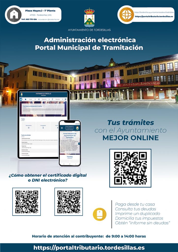 El Ayuntamiento de Tordesillas ha presentado este lunes una nueva guía elaborada recientemente con el objetivo de facilitar al ciudadano sus trámites municipales de manera digital. Con este acto se pretende recordar a los vecinos que sigue siendo posible llevar a cabo cada vez más trámites con el Consistorio, a través del Portal Municipal de Tramitación, el cual ha sido optimizado y actualizado recientemente, y se encuentra a disposición de los ciudadanos en la dirección web www.portaaltributario.tordesillas.es.