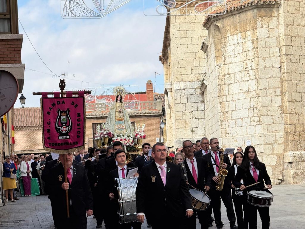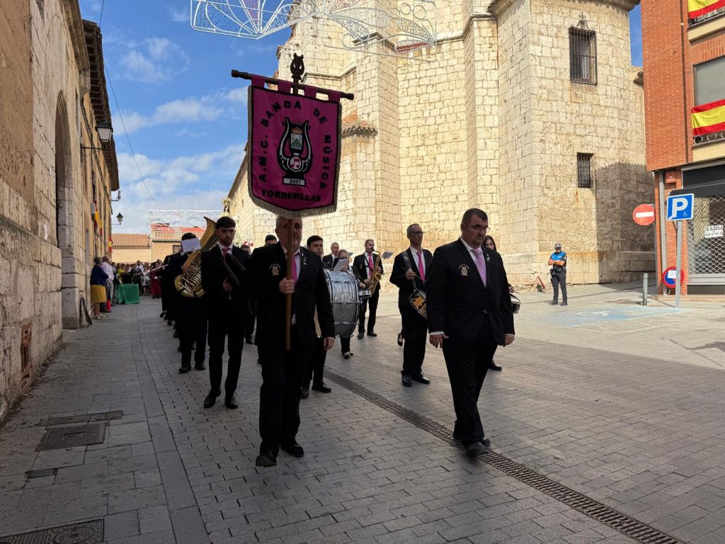 Desde primera hora de la mañana, y con el nerviosismo propio del inicio de los festejos, los tordesillanos y tordesillanas se vistieron este lunes con sus mejores galas y, de punta en blanco, fueron llegando a la iglesia de Santa María para acudir a la misa en honor a la virgen de la Guía, que sería el primer plato del menú que se estaba cocinando en la localidad; el comienzo de las fiestas patronales.