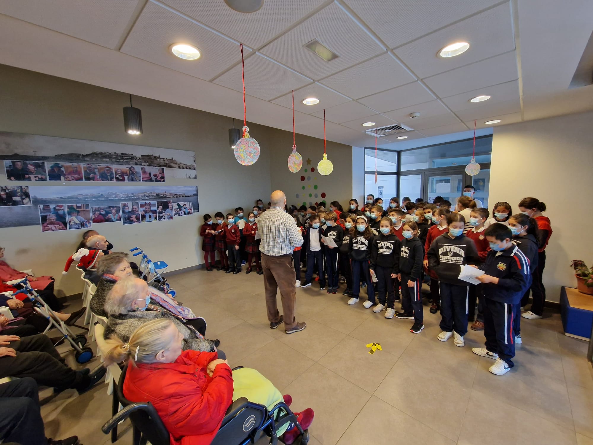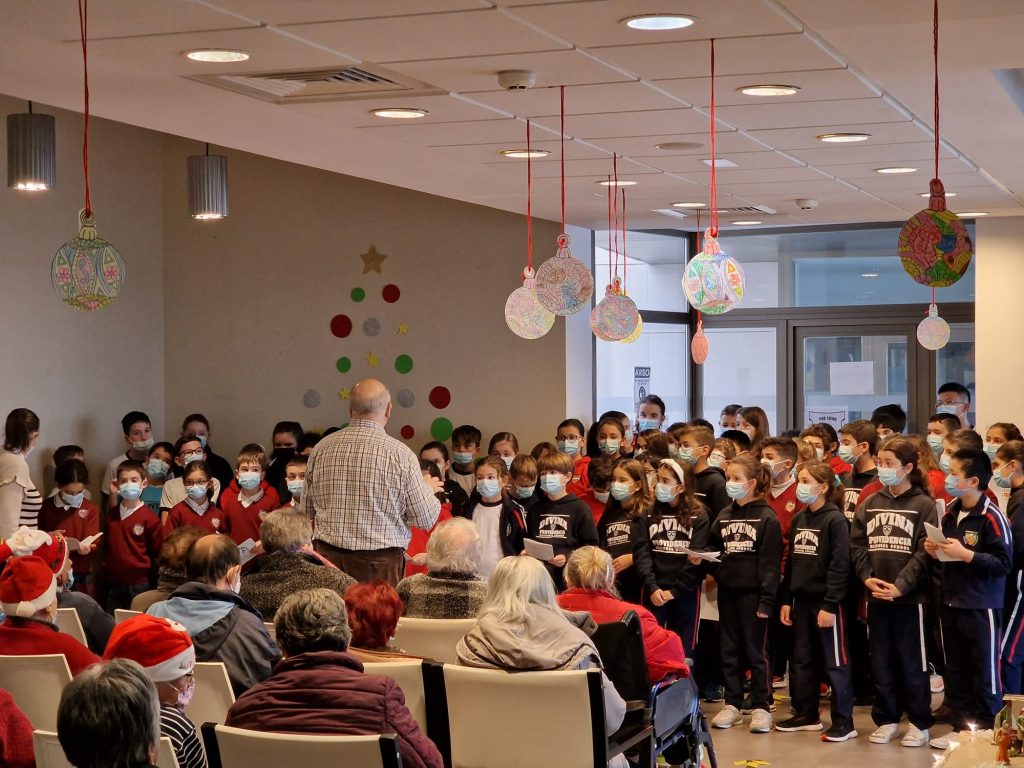 Un total de 62 estudiantes de entre 9 y 12 años se reunieron para ofrecer el primer concierto navideño desde 2020 para la tercera edad. Los alumnos de cuarto a sexto de primaria prepararon un emotivo concierto que no dejó indiferente a nadie y volvió a promover el contacto entre las distintas generaciones del municipio.