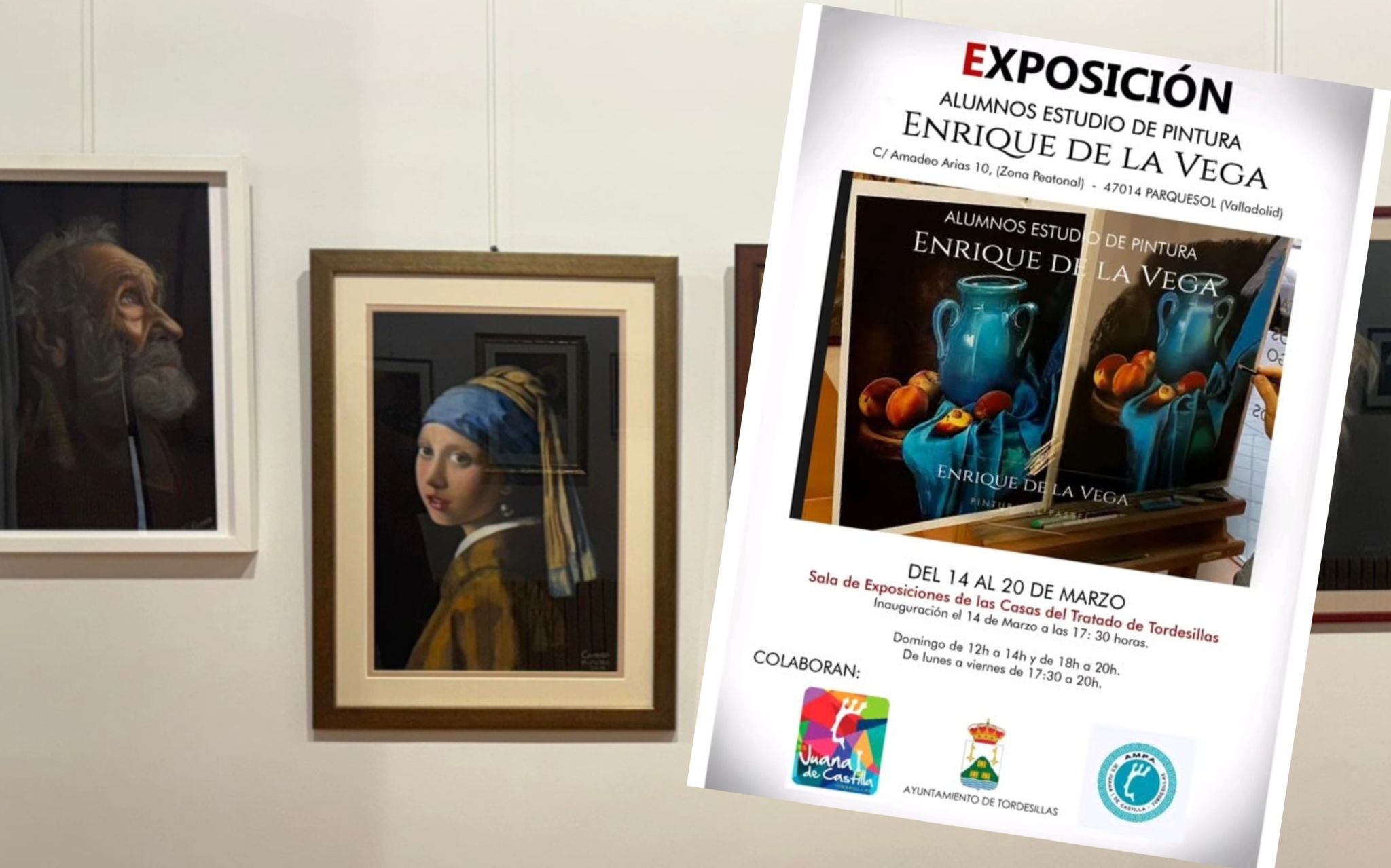 La Sala de Exposiciones de las Casas del Tratado acoge desde este sábado 14 de marzo una muestra de pintura realizada por alumnos del estudio artístico de Enrique de la Vega, ubicado en Valladolid. La exposición forma parte de la programación de la Semana Cultural del IES Juana I de Castilla.