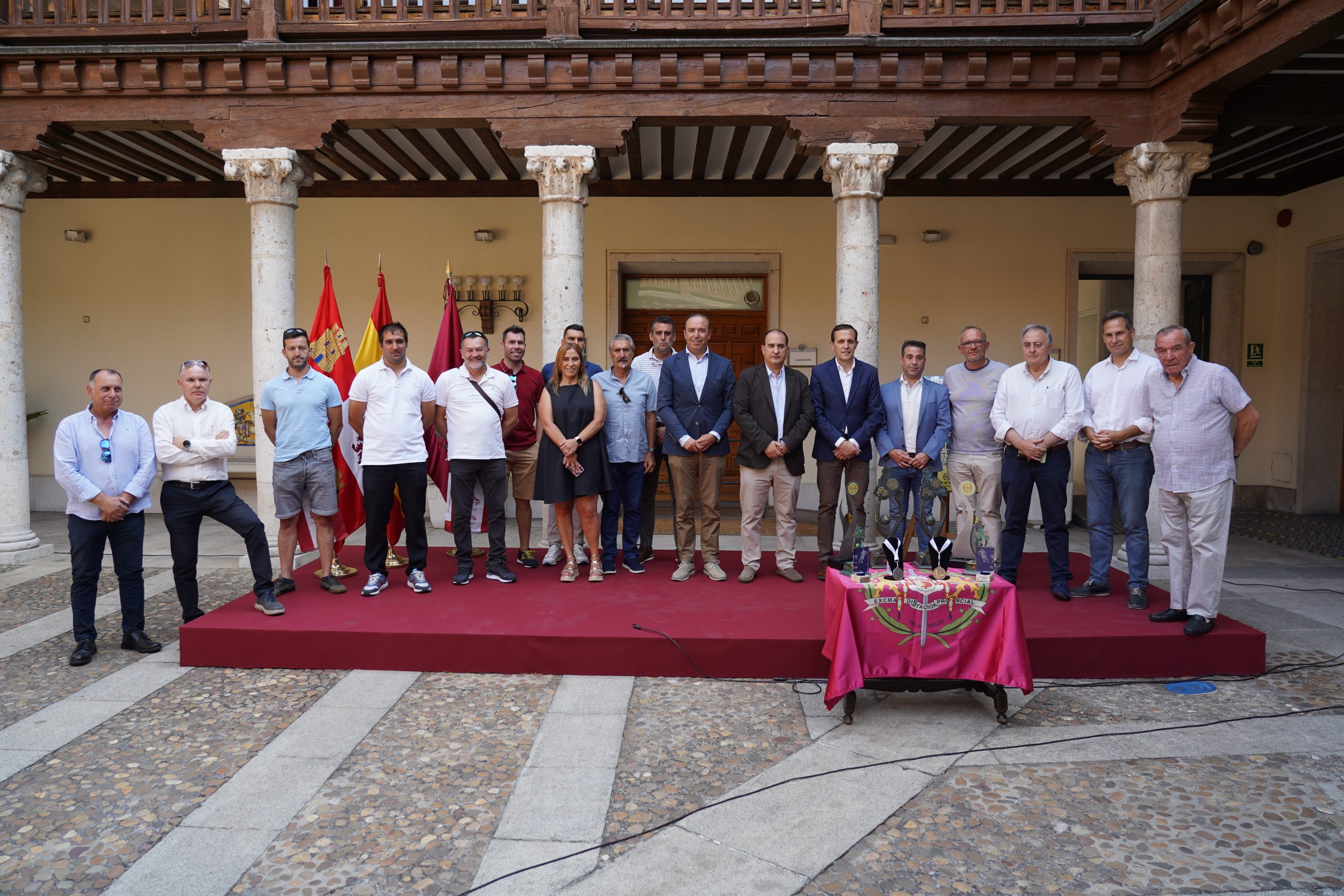 El presidente de la Diputación de Valladolid, Conrado Íscar, junto al presidente de la Delegación Territorial de Fútbol de Valladolid, Manuel Heredia, el alcalde de Valdestillas, Alberto Sanz, y representantes de los municipios y los clubes locales, han presentado el XXXI Trofeo de Fútbol Diputación de Valladolid y el V Trofeo de Fútbol Femenino Diputación de Valladolid.