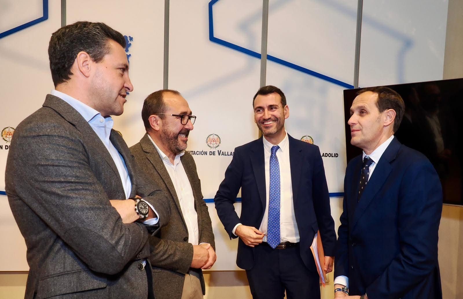 El presidente de la Diputación de Valladolid, Conrado Íscar, ha mantenido una reunión de trabajo con los presidentes de los cinco Grupos de Acción Local (GAL) de la provincia, en un encuentro celebrado en el Palacio de Pimentel y en el que han participado también el eurodiputado Raúl de la Hoz y la directora general de Industria y Cadena Agroalimentaria, Cristina Frías.