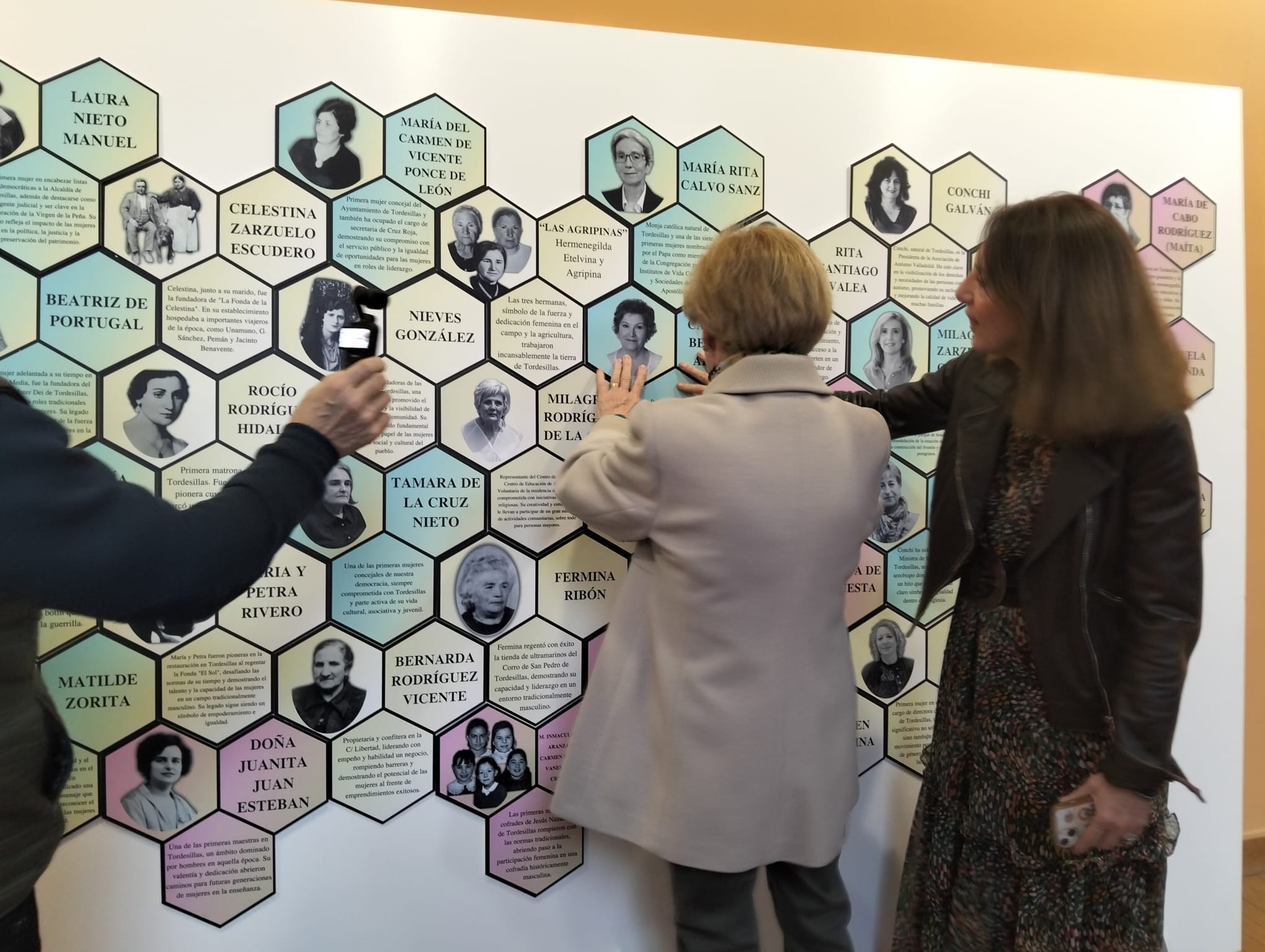 La Biblioteca Municipal de Tordesillas volvió a convertirse ayer en una sala de exposiciones con la inauguración de la nueva edición de la muestra ‘Tordesillas a través de ellas’; un homenaje a las mujeres del municipio que, con su esfuerzo, talento y dedicación, han dejado huella en la localidad. Al acto acudieron la concejal de Asuntos Sociales e Igualdad, Mercedes Castro, junto a los ediles Verónica Gutiérrez y Juan Francisco Rodríguez, así como parte de las nuevas incorporaciones que se unen al gran mural ‘colmena’ que las recoge.