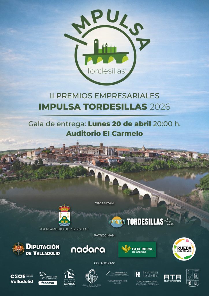 El Ayuntamiento de Tordesillas y el medio de comunicación Tordesillas al Día vuelven a unirse para distinguir la labor y la trayectoria de los empresarios y autónomos del municipio con una nueva edición de los Premios Impulsa. Tras el éxito de los primeros galardones entregados en 2022, el evento busca reunir nuevamente a los negocios de la localidad y su comarca para potenciar el entorno empresarial, dar las claves a los emprendedores y jóvenes que busquen dar sus primeros pasos en este mundo, y laurear a aquellos que hacen posible el desarrollo económico del municipio y su área de influencia.