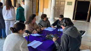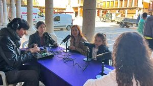 La Plaza Mayor de Tordesillas se ha convertido este martes en un estudio de radio con la actividad llevada a cabo por los alumnos de 3ºB de ESO del IES Juana I de Castilla, quienes han realizado un radio-podcast en directo como parte de la programación de su Semana Cultural organizada por la Estación JDEK.