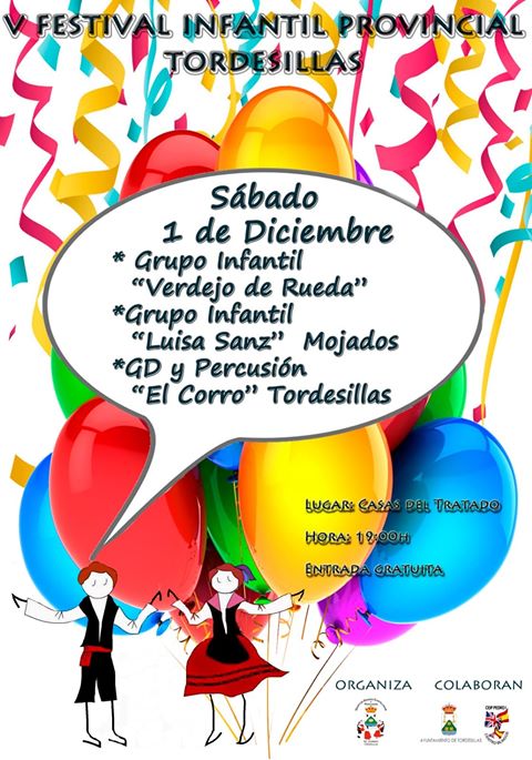 Tordesillas vuelve a convertirse este fin de semana en sede, a nivel provincial, del baile regional. El sábado 1 de diciembre, a las 19:00 horas, las Casas del Tratado acogerán la celebración del V Festival Infantil Provincial, cuya entrada tendrá carácter gratuito. Organizado por el Grupo de Danzas y Percusión ‘El Corro’, el grupo local recibirá la visita y actuación de los grupos infantiles ‘Verdejo de Rueda’ y ‘Luisa Sanz’ de Mojados. En el encuentro colaboran, además, el Ayuntamiento de Tordesillas y el CEIP Pedro I.
