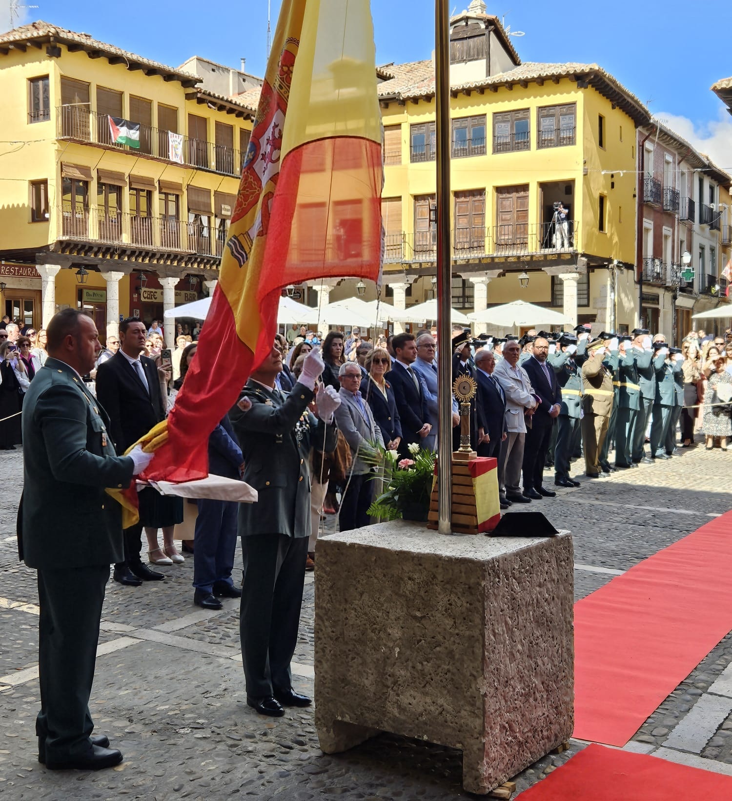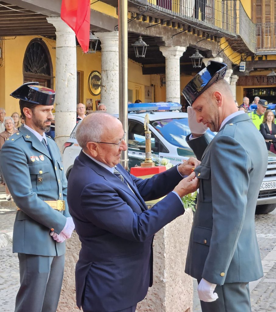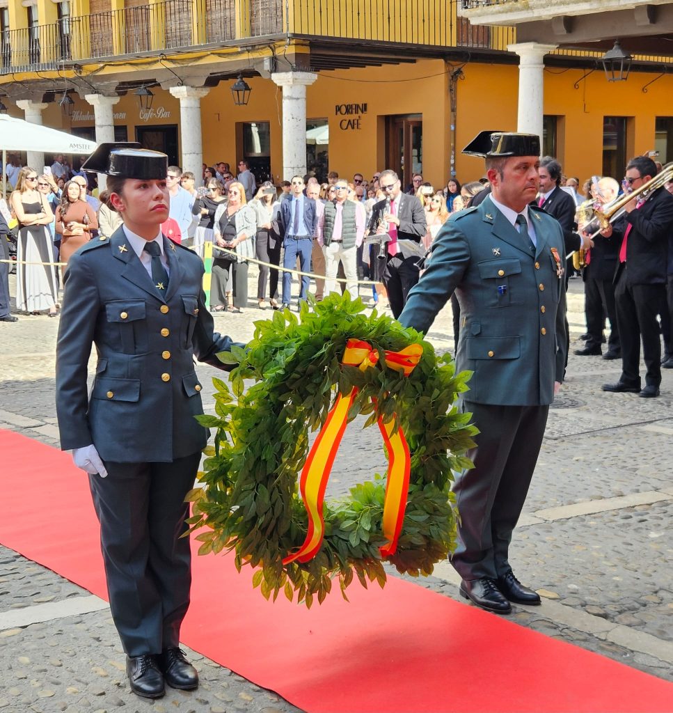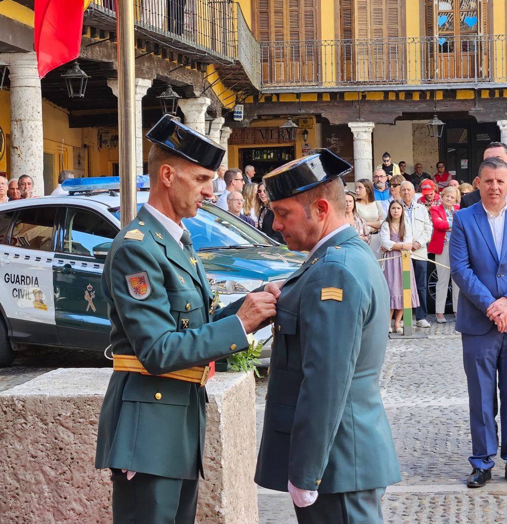 Una vez en el templo se ha celebrado una misa en la que han cobrado protagonismo los agentes de la benemérita, y tras la cuál, autoridades y asistentes se han desplazado a la Plaza Mayor, donde todo estaba dispuesto para el acto central de la jornada. Este ha dado comienzo con el izado de la bandera nacional, el cuál ha estado seguido por el otorgamiento de condecoraciones a distintos miembros de la Guardia Civil de Tordesillas. Así, se han entregado distintivos a Héctor Castelao, Alberto Simón, Jesús Ángel García, José Ángel Gil, Jorge Diego Casado y Pablo Boyano.