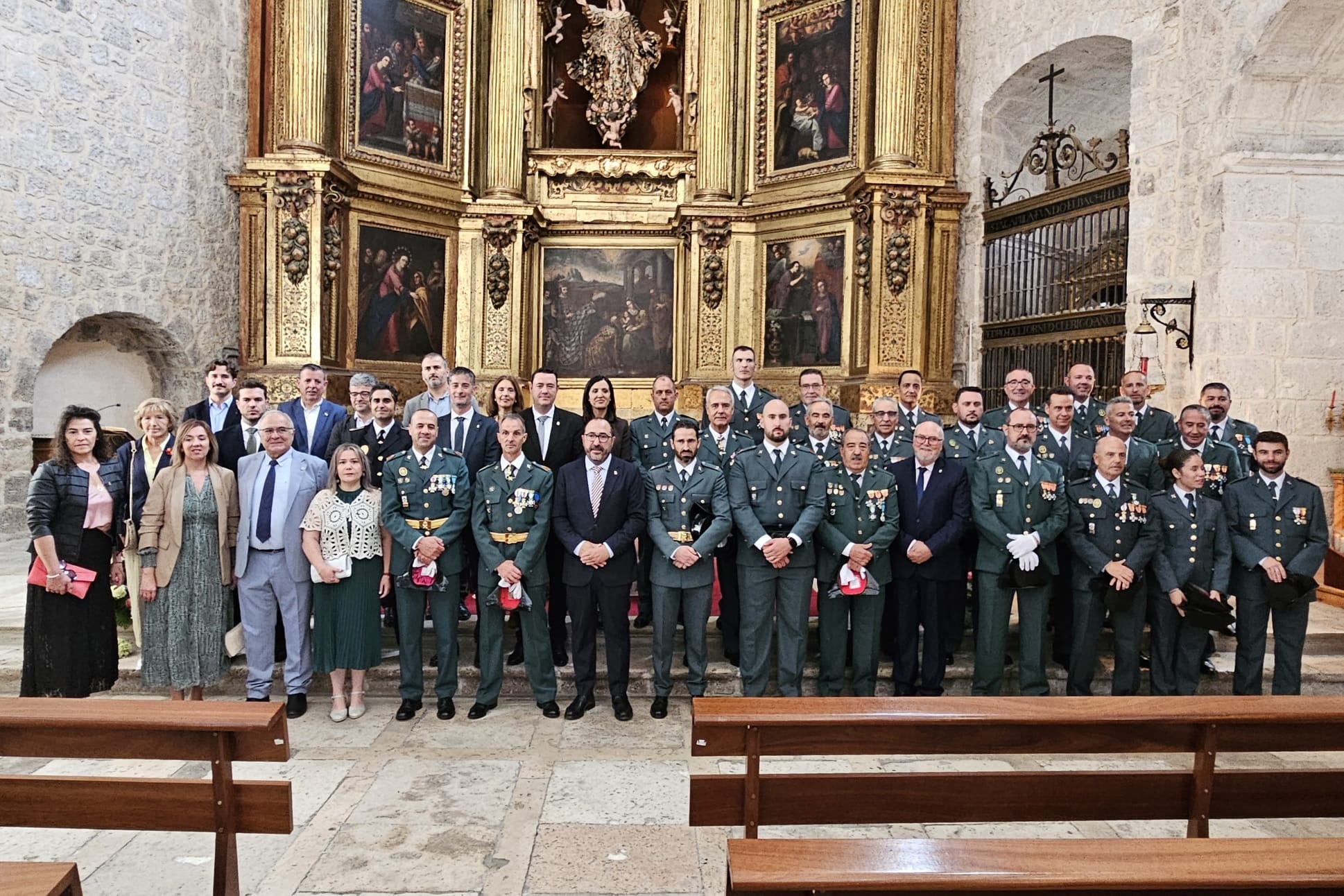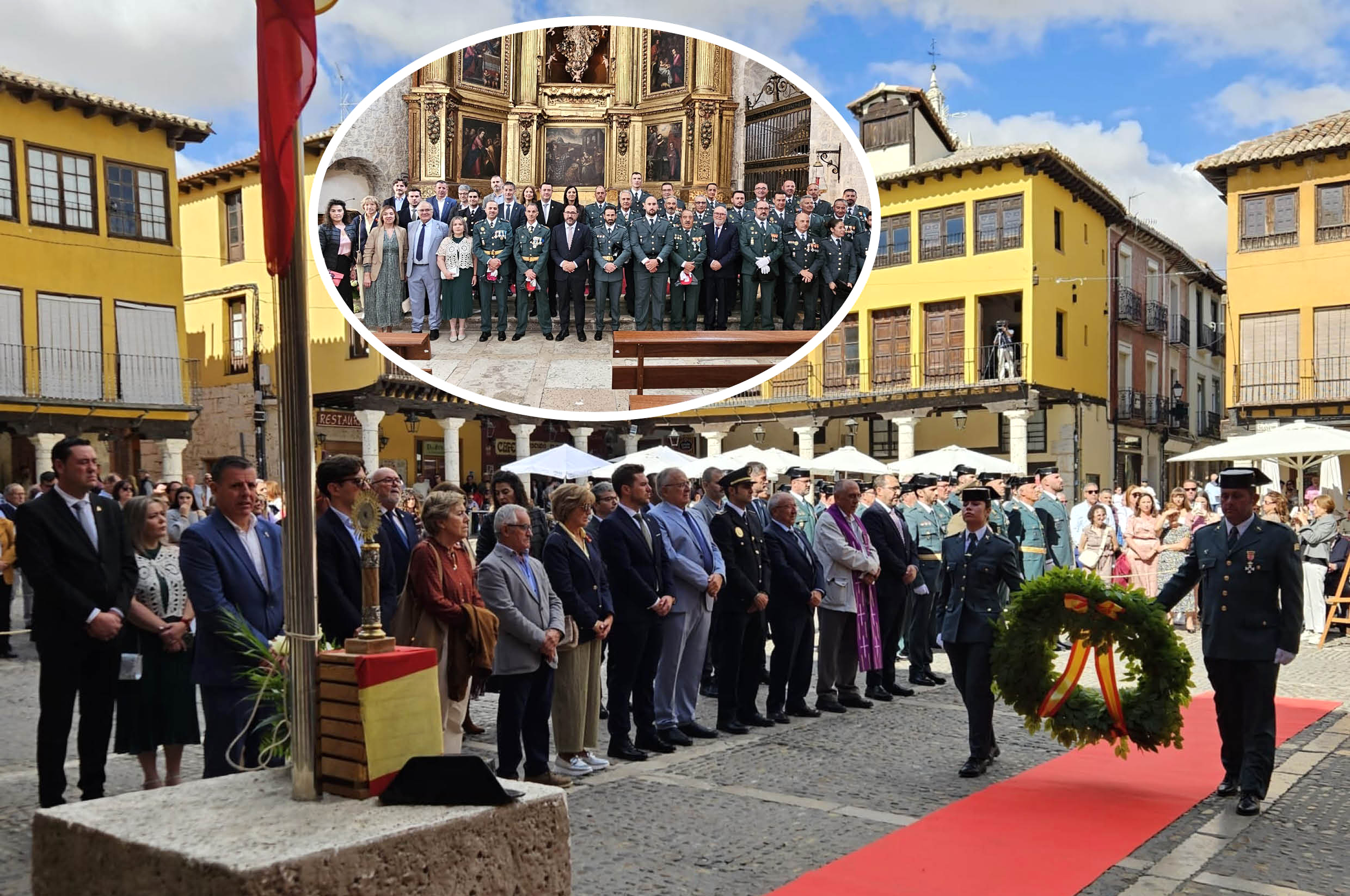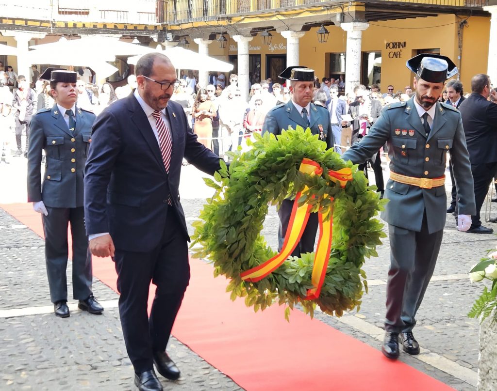 Una vez en el templo se ha celebrado una misa en la que han cobrado protagonismo los agentes de la benemérita, y tras la cuál, autoridades y asistentes se han desplazado a la Plaza Mayor, donde todo estaba dispuesto para el acto central de la jornada. Este ha dado comienzo con el izado de la bandera nacional, el cuál ha estado seguido por el otorgamiento de condecoraciones a distintos miembros de la Guardia Civil de Tordesillas. Así, se han entregado distintivos a Héctor Castelao, Alberto Simón, Jesús Ángel García, José Ángel Gil, Jorge Diego Casado y Pablo Boyano.