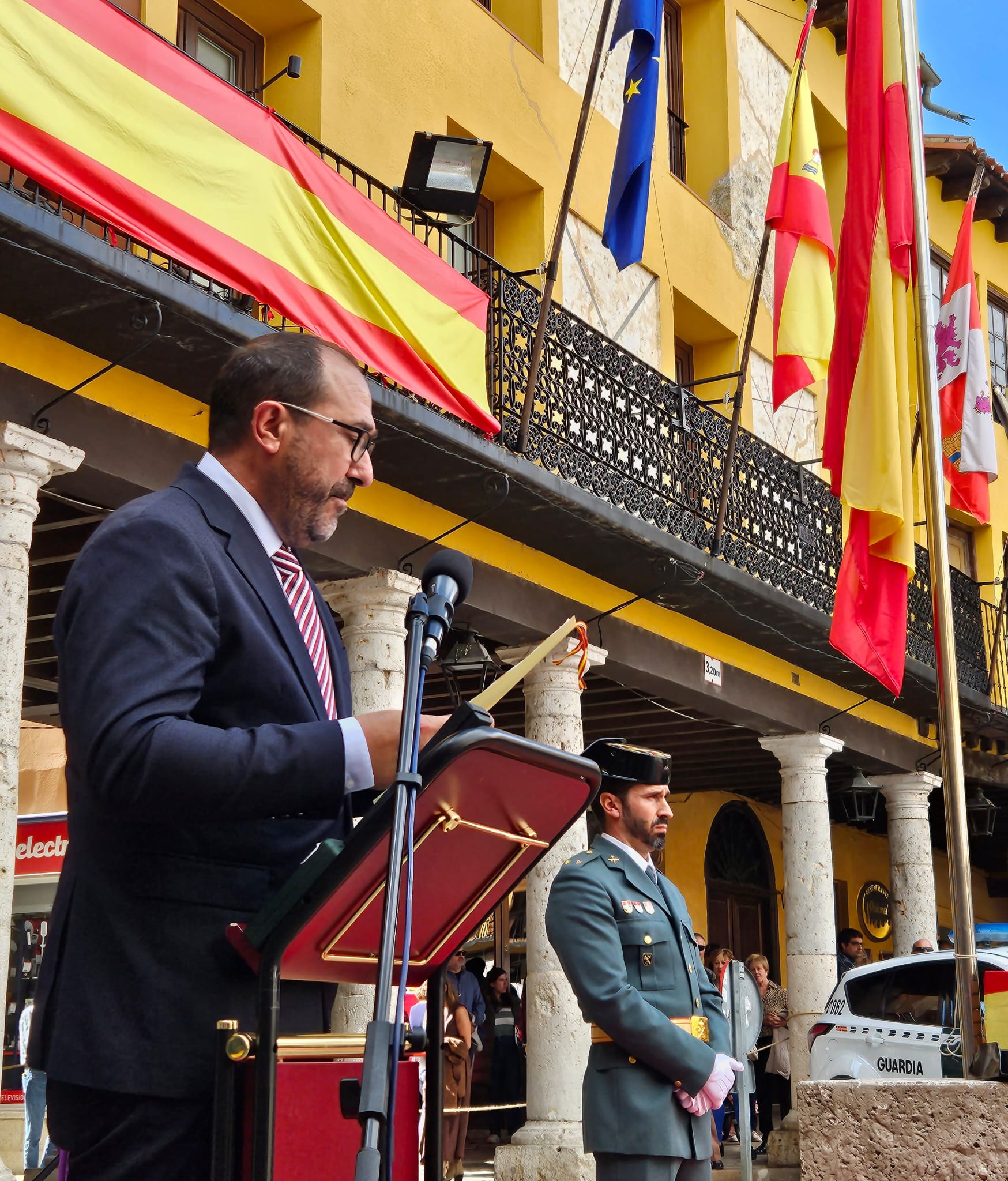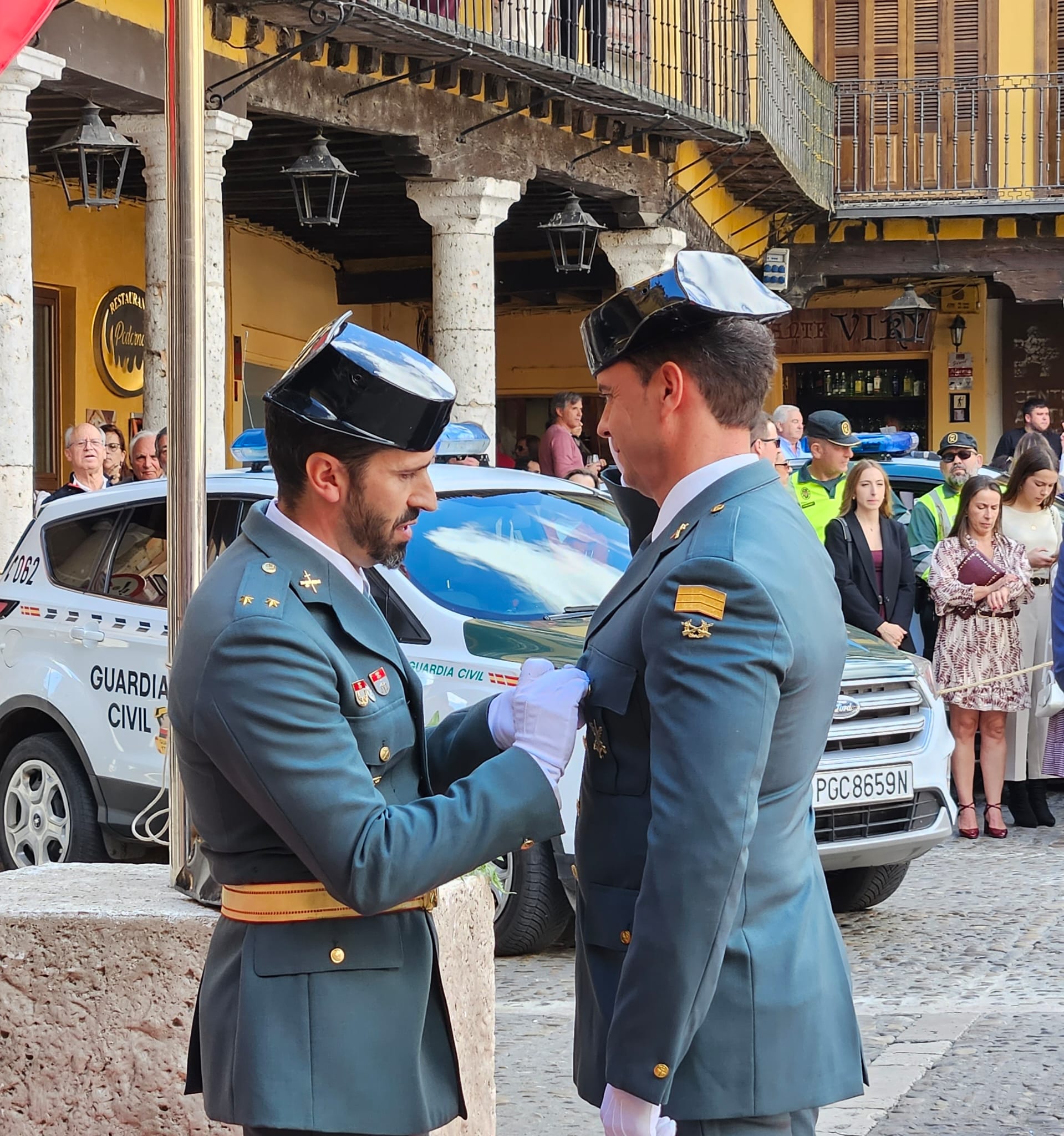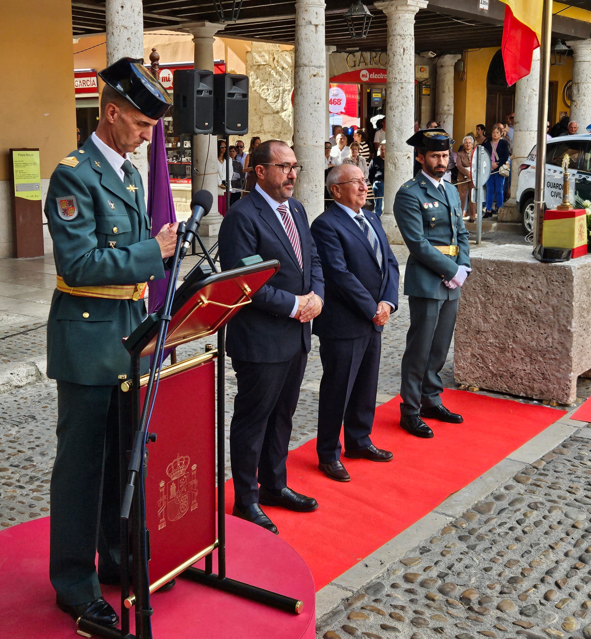 Además, el primer edil ha pronunciado otro expositivo en el que ha agradecido al instituto armado su labor. “El pueblo les tiene respeto y gratitud y un cariño sincero. Agradecemos vuestra entrega, esfuerzo y cercanía, y a los condecorados, les felicitamos por su ejemplo de vocación y compromiso”, ha señalado Oliveira, cerrando un acto en el que ha sonado el himno de la Guardia Civil entre otras piezas gracias a la colaboración de la Banda de Música, y que ha atraído a numerosos vecinos y visitantes a la Plaza Mayor.