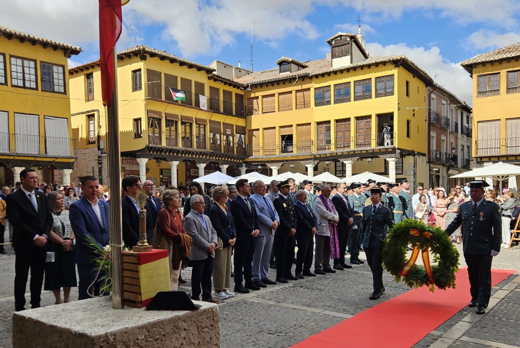 Tordesillas ha celebrado este domingo el Día de la Hispanidad y de la Virgen del Pilar con distintos actos institucionales en los que, de nuevo, ha cobrado protagonismo la Guardia Civil. A mediodía, las autoridades municipales, encabezadas por el alcalde, Miguel Ángel Oliveira, han visitado a los miembros del instituto armado en su puesto local, desde donde, acompañados por la Banda de Música del municipio, se han dirigido a la iglesia de Santa María.