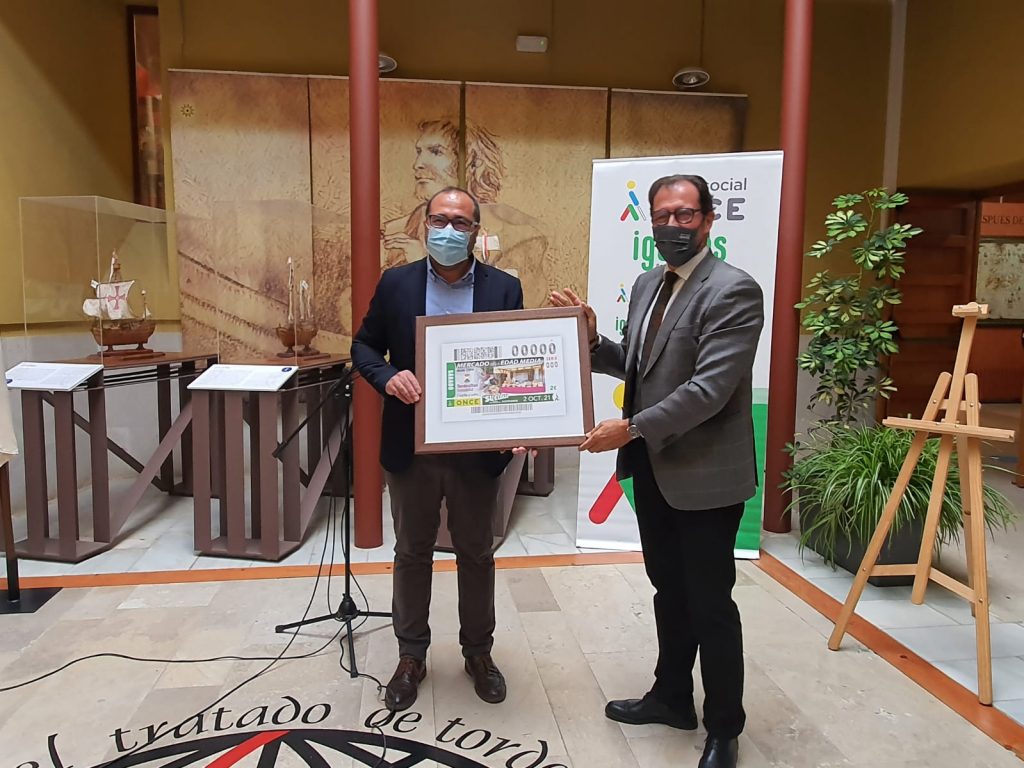 El alcalde de Tordesillas, Miguel Ángel Oliveira, y el delegado territorial de la ONCE en Castilla y León, Ismael Pérez Blanco, han presentado este cupón, en un acto que ha tenido lugar en las Casas del Tratado de la localidad . Junto a ellos han estado presentes otros miembros de la corporación municipal como Javier González Vega, Miguel ángel Posada o Jesús Carro, además de dos representantes del CIT – organizador de dicho mercado-.